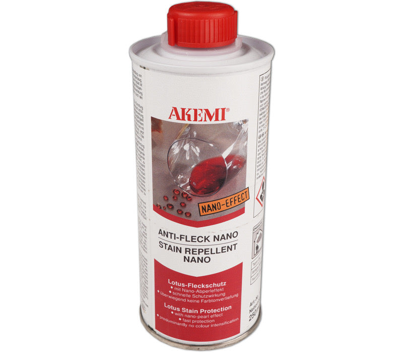 Die zu behandelnde Fläche gründlich reinigen und trocknen lassen. Anschließend die Akemi Anti-Fleck Nano Versiegelung gleichmäßig auftragen und einwirken lassen. Überschüssiges Material nach der Einwirkzeit entfernen.